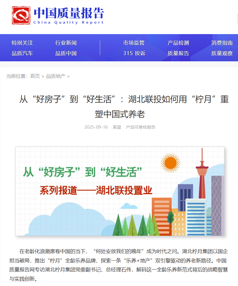 中國質(zhì)量報:湖北聯(lián)投如何用“檸月”重塑中國式養(yǎng)老