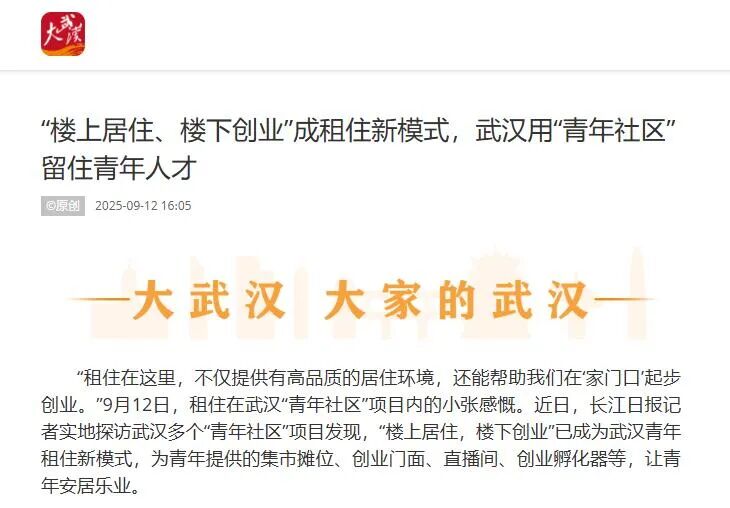 近日,長江日報發(fā)布《“樓上居住、樓下創(chuàng)業(yè)”成租住新模式,武漢用“青年社區(qū)”留住青年人才》專題報道,聯(lián)投新青年多個青年社區(qū)以安居為基底、創(chuàng)業(yè)為引擎,打造「居住×社交×創(chuàng)業(yè)」租住新模式成為關(guān)注焦點,以下為報道內(nèi)容(節(jié)選)。