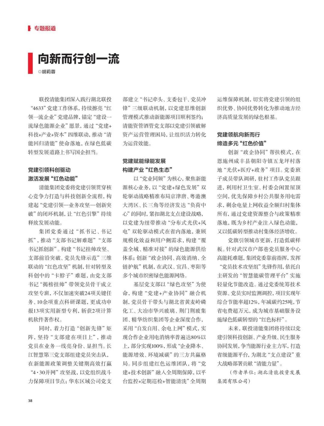 近日,《黨員生活》雜志刊發(fā)聯(lián)投清能集團(tuán)《向新而行創(chuàng)一流》文章,關(guān)注報道聯(lián)投清能集團(tuán)黨建特色亮點(diǎn)工作。以下為刊登全文。